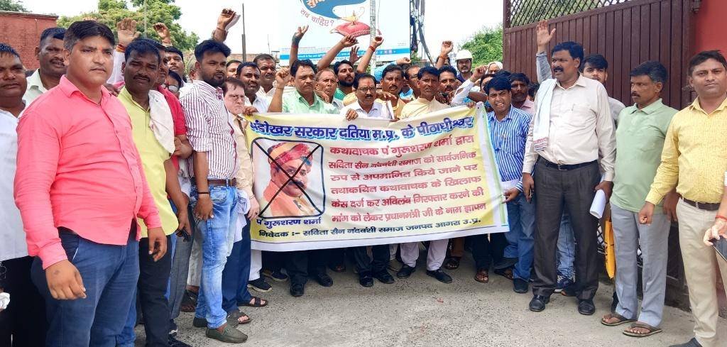 सार्वजानिक मंच से कथावाचक का अमर्यादित टिप्पणी से सविता समाज में उबाल
