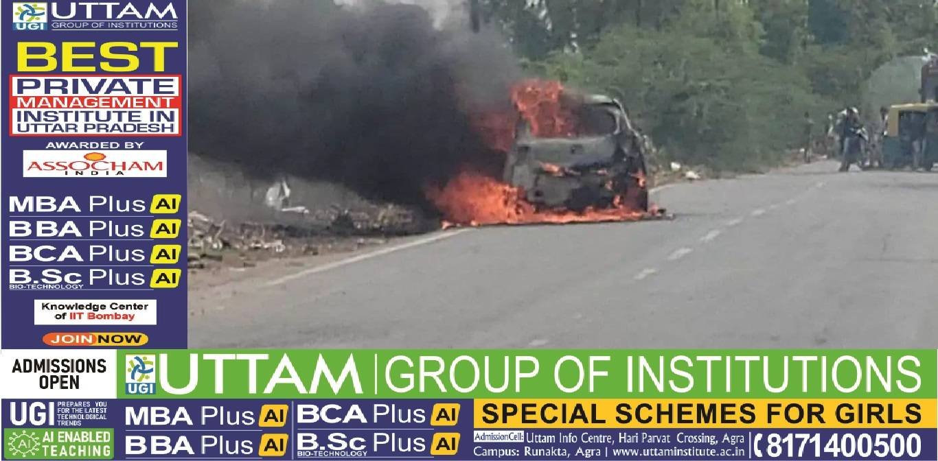 शिक्षक दंपत्ति की चलती कार में लगी आग लेकिन कार को रस्ते में जलता छोड़ पहुंचे स्कूल...